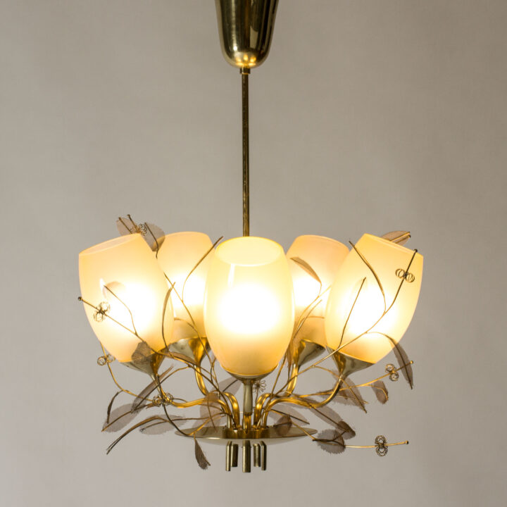 Once you get into the embrace of Hans J. Wegner’s “Papa Bear” lounge chair it is likely that you will find it the most comfortable chair you have ever reclined in. It has springs in the back as well as in the seat, making it extra susceptible to your body form. Floor lamp by Tapio Wirkkala, one of a pair, occasional table by Finn Juhl and unique vase by Carl-Harry Stålhane.