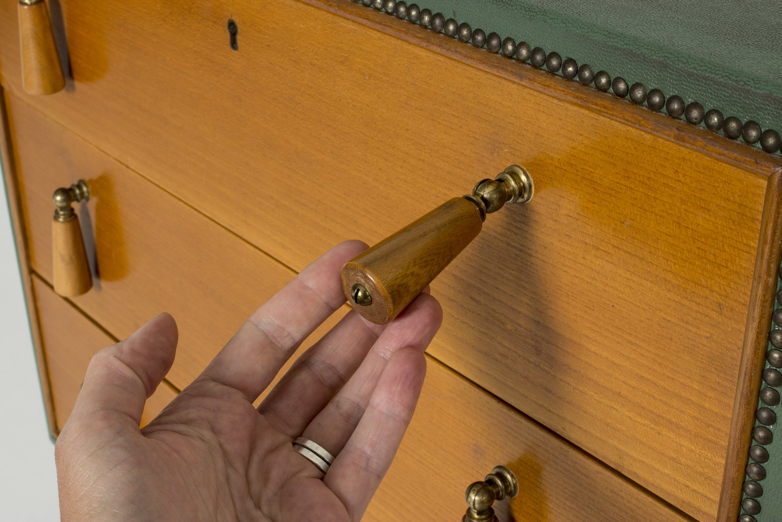 Schulz’s furniture was very modern – and at the same time often inspired by older styles such as late baroque. His design was so original that he even patented some of his techniques. Among them the usage of decorative nails as part of the design, a technique that was named “Bopoint”.