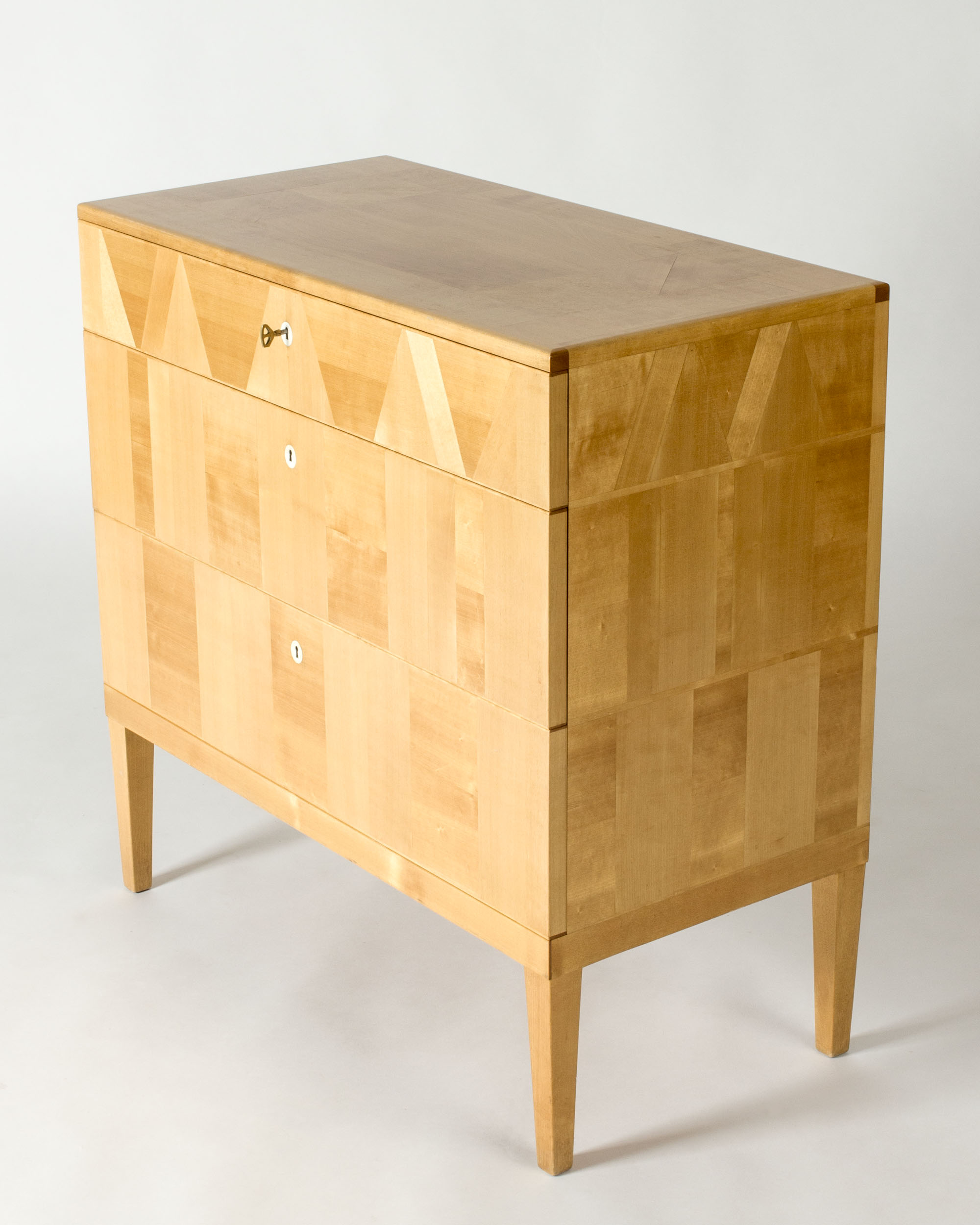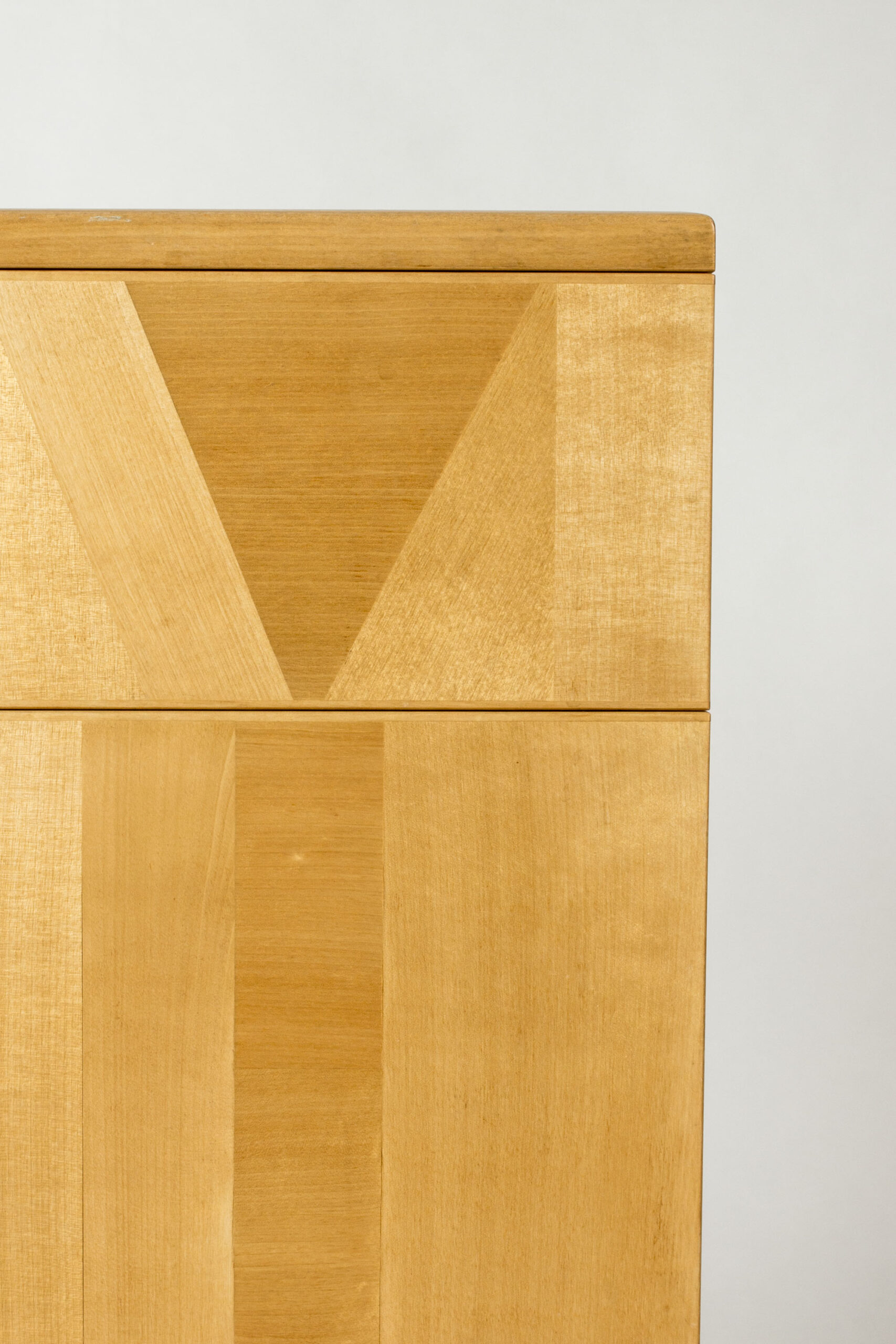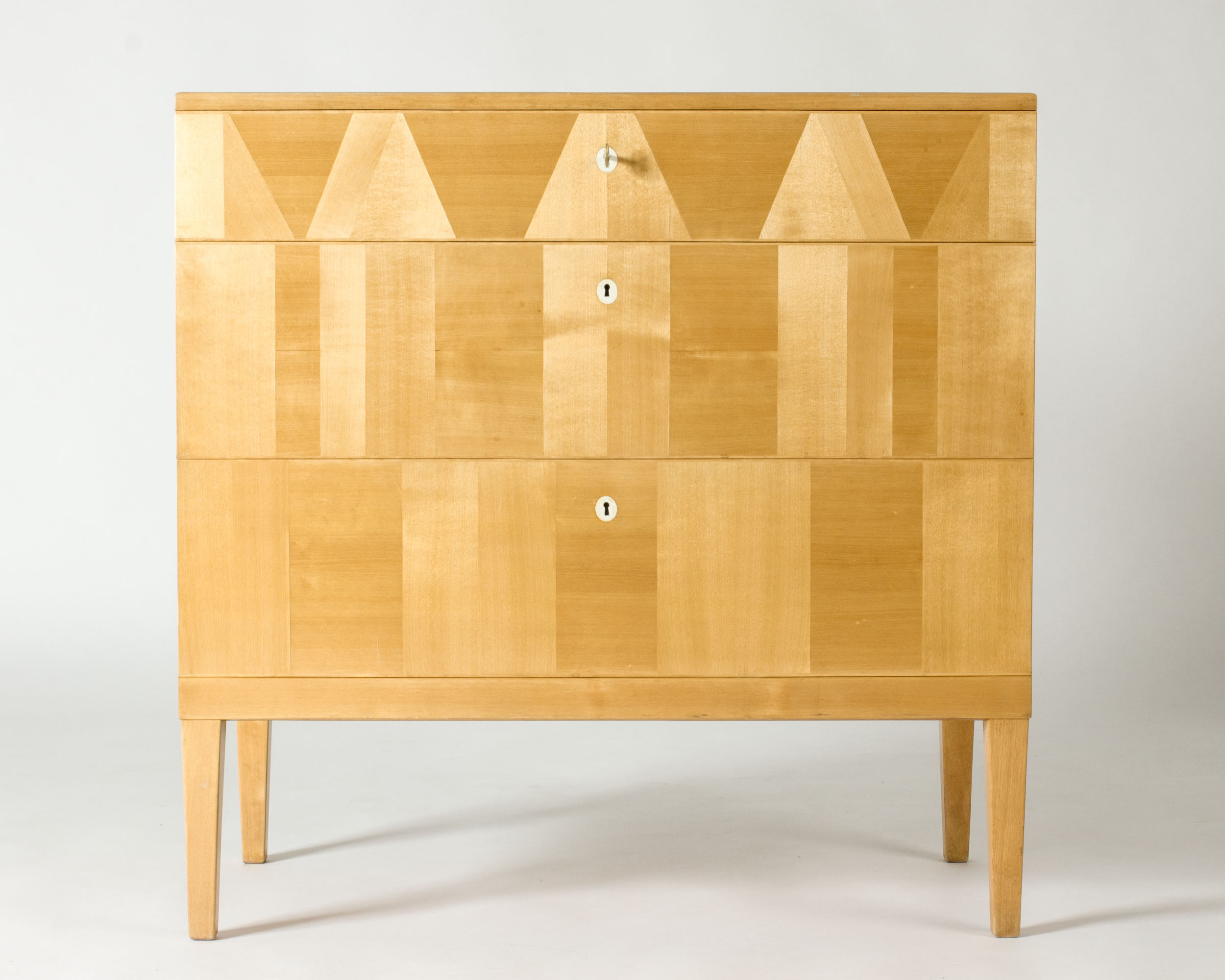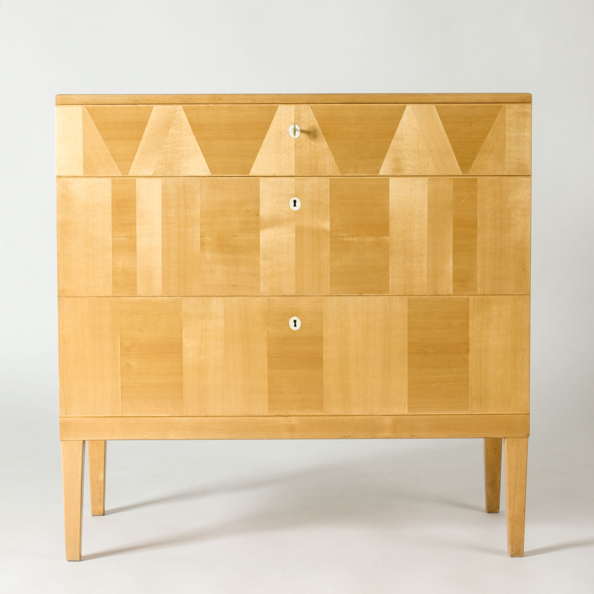 Lovely chest of drawers by Carl Malmsten, made from birch with clean lines. Veneer laid in a striking graphic pattern.