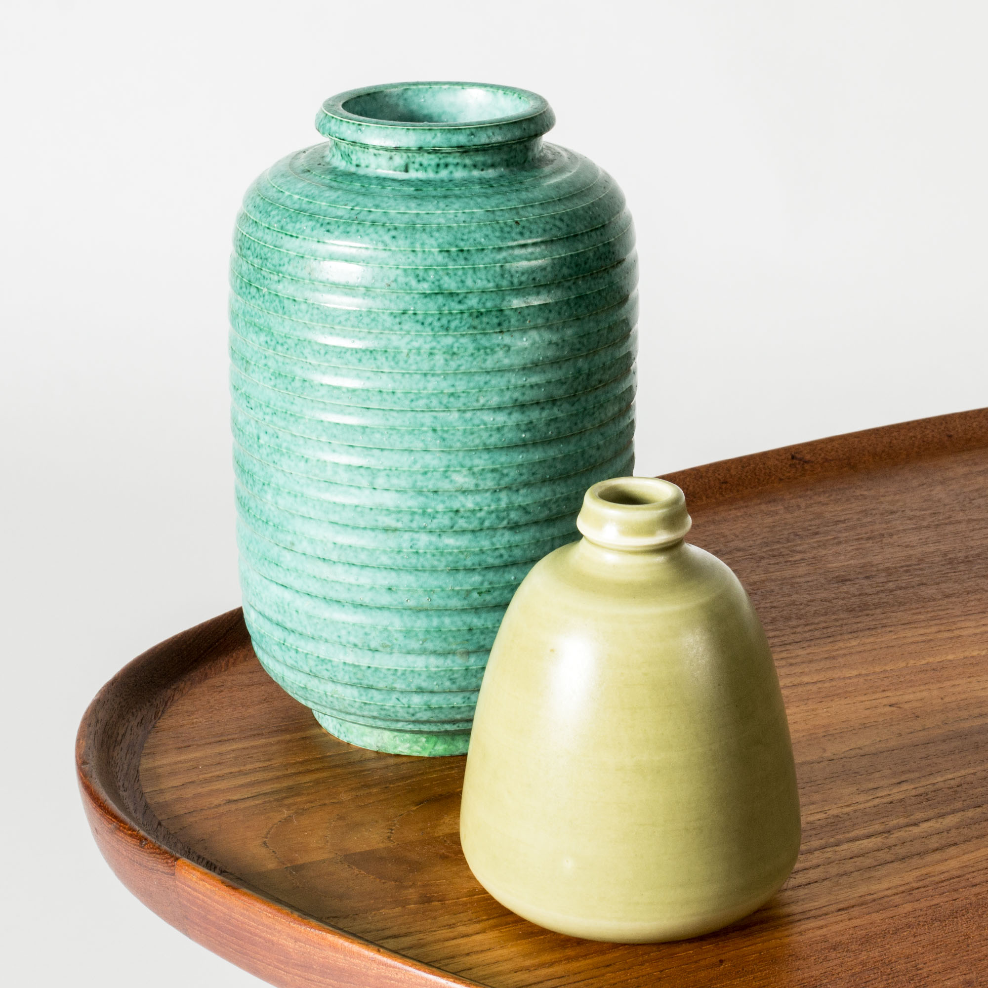 Fleeing World War II, German potters Eric and Ingrid Triller settled in the industrial village Tobo and started making their Bauhaus inspired ceramics in 1935. Their small production and the fact that all of their pieces were hand made by the couple themselves won them acclaim around the world.
