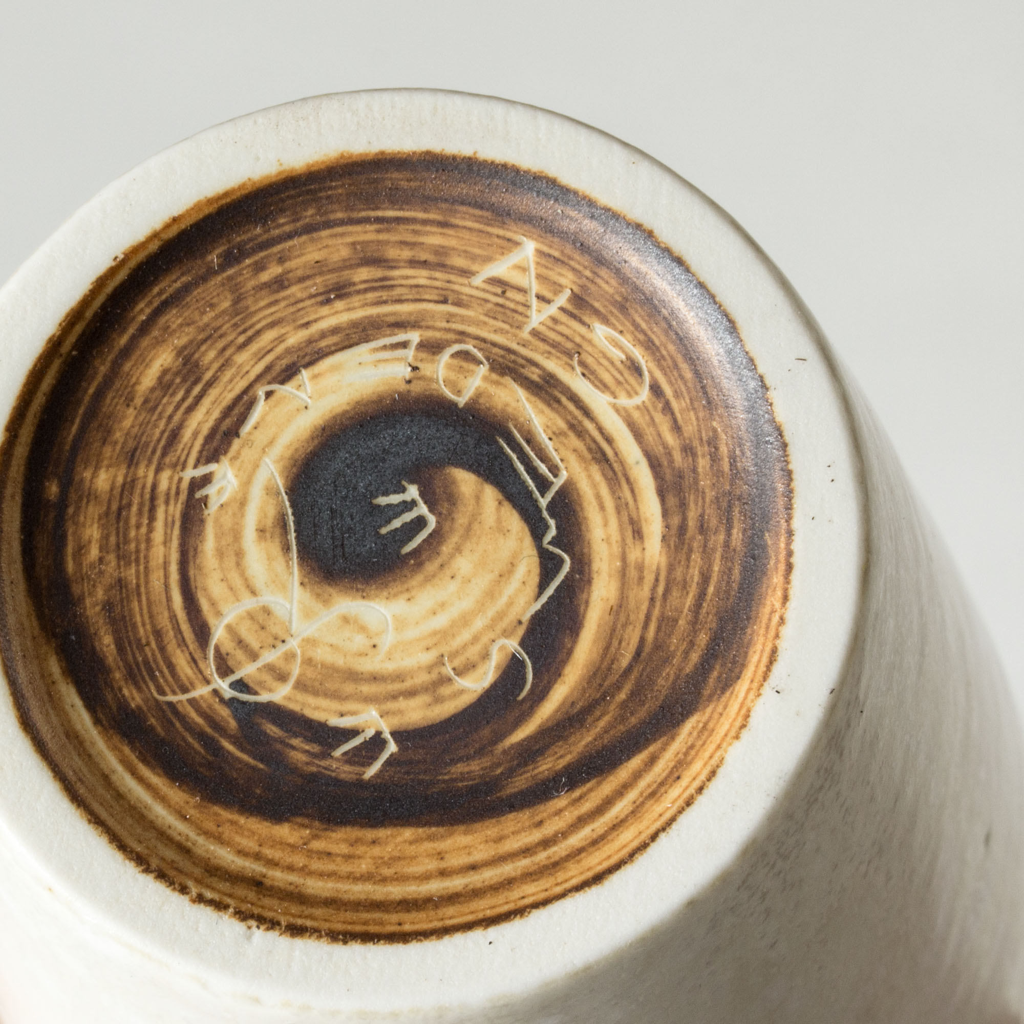 Gunnar Nylund had a long and active career that except for stoneware included bathroom furnishing designs for Ifö, glass vases for Strömbergshyttan, a dinosaur sculpture for Bromölla kommun and several public works. He was an inventor who explored ideas for energy production and many other areas. He was active as a ceramicist into the late years of his long life.