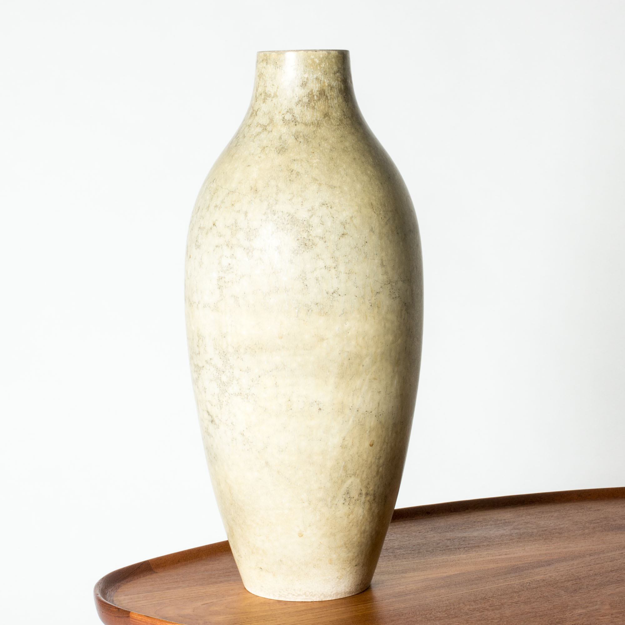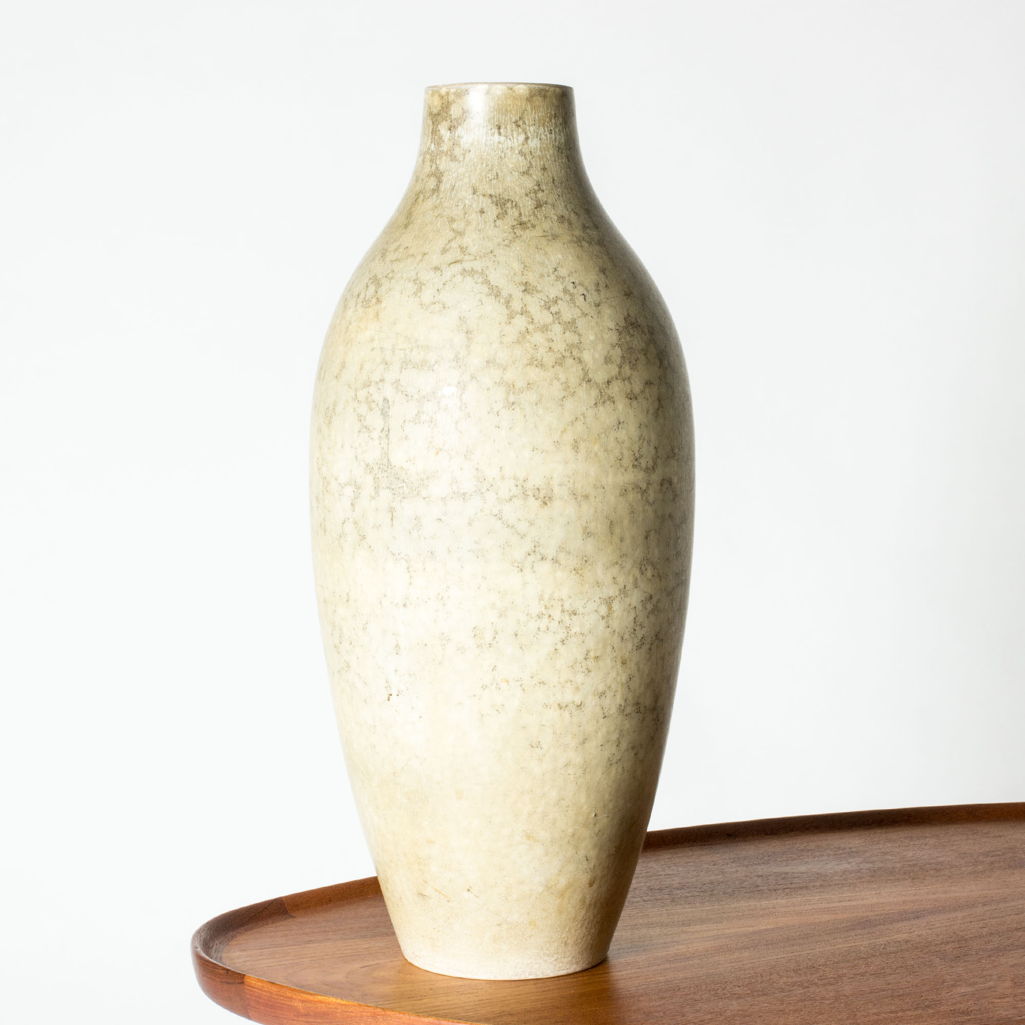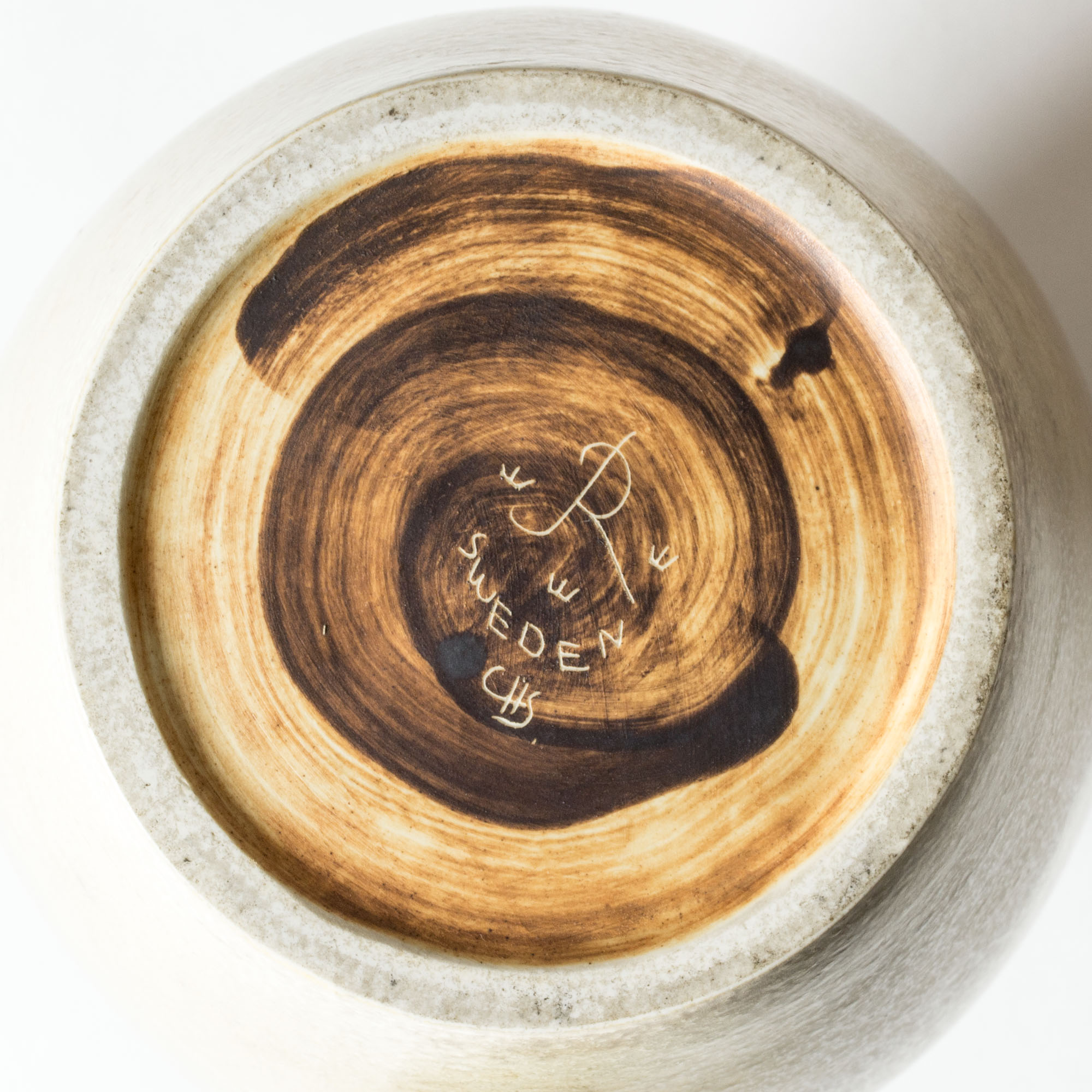 At Rörstrand, where he was employed from 1939 to 1973, Stålhane designed unique stoneware, serially produced decorative items and tableware, large public decorations and sculptures. He was an innovator who drove forward the evolvement of ceramic artistry and design, from the slender, graphic vases of the 1950s to the brutal, expressive style of the 1960s, deeply influencing his contemporaries. He was instrumental to Rörstrand as a creative leader and brand representative, and his work and magnetic personality were fundamental in maintaining the company’s status. From 1963 to 1971 he was head teacher in ceramics and glass at Konstindustriskolan in Gothenburg, making his mark in a new generation of ceramicists and artists. In 1973 he ended his employment at Rörstrand due to the changing landscape in the industry where artistic freedom had to give increasing way to market forces. He then founded the ceramic studio Designhuset, where he and a team of other artists and throwers designed and produced stoneware in a smaller scale compared to Rörstrand but with greater freedom. Stålhane worked at Designhuset until his death in 1990.