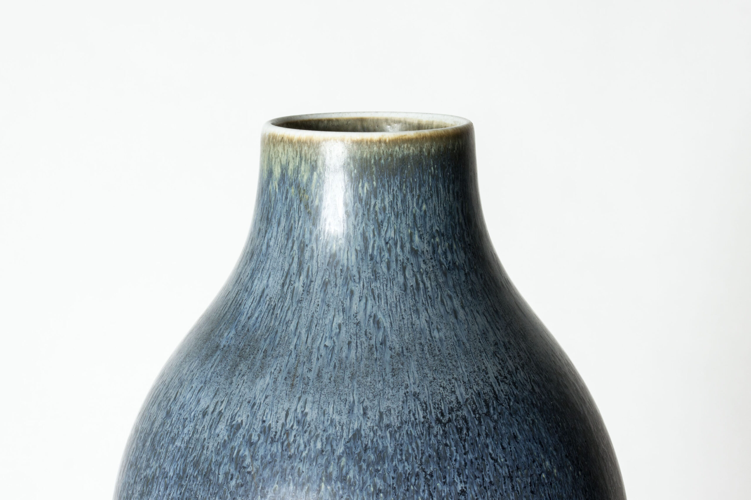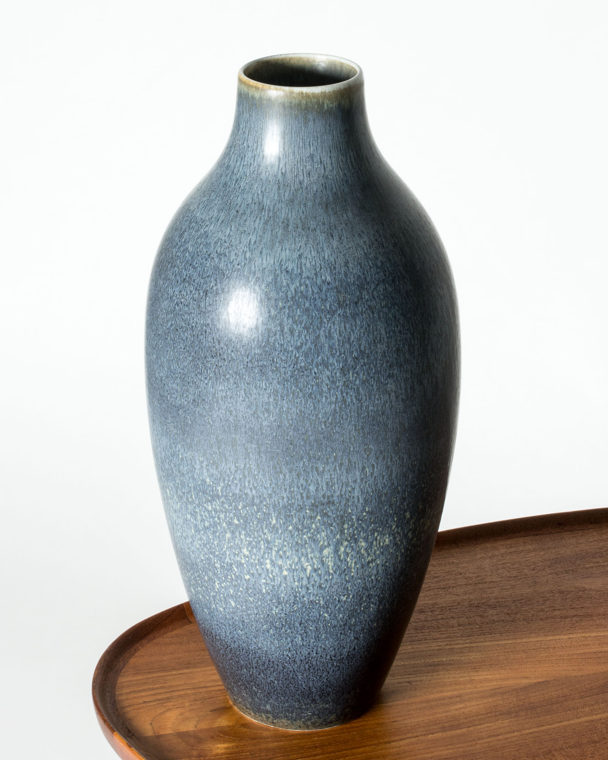 Carl-Harry Stålhane was one of the stars among Swedish ceramic artists during the 1950s, 1960s and 1970s, whose designs are just as highly regarded and sought-after by collectors today. He was born in Mariestad, close to Lidköping where the Rörstrand stoneware factory was located. He early expressed artistic aptitude as an amateur actor and illustrator, and in spite of lack of support from his father, he looked for work at Rörstrand which was the area’s creative hub. Stålhane began work at Rörstrand as an eighteen year old, decorating stoneware vases. His remarkable talent was noticed by Isaac Grünewald who was at Rörstrand as a guest artist, and who made Stålhane his assistant. Stålhane subsequently went on to study painting at Grünewald’s school in Stockholm and sculpture at Academie Colarossi in Paris.