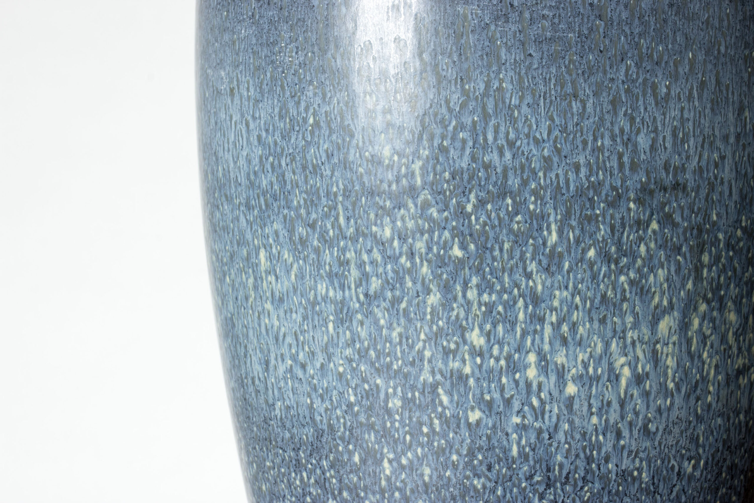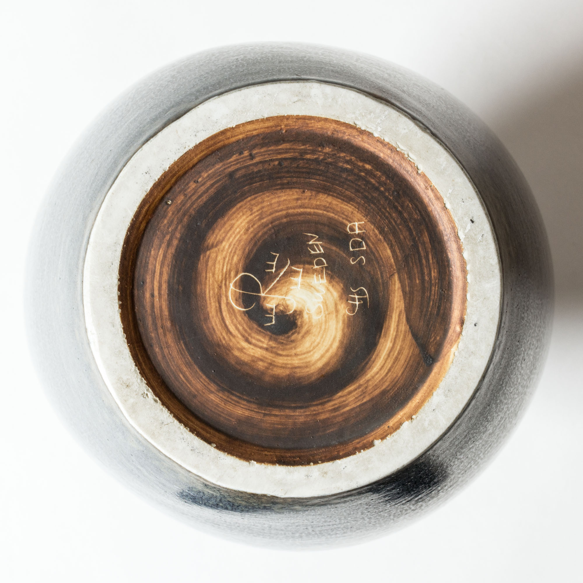 At Rörstrand, where he was employed from 1939 to 1973, Stålhane designed unique stoneware, serially produced decorative items and tableware, large public decorations and sculptures. He was an innovator who drove forward the evolvement of ceramic artistry and design, from the slender, graphic vases of the 1950s to the brutal, expressive style of the 1960s, deeply influencing his contemporaries. He was instrumental to Rörstrand as a creative leader and brand representative, and his work and magnetic personality were fundamental in maintaining the company’s status. From 1963 to 1971 he was head teacher in ceramics and glass at Konstindustriskolan in Gothenburg, making his mark in a new generation of ceramicists and artists. In 1973 he ended his employment at Rörstrand due to the changing landscape in the industry where artistic freedom had to give increasing way to market forces. He then founded the ceramic studio Designhuset, where he and a team of other artists and throwers designed and produced stoneware in a smaller scale compared to Rörstrand but with greater freedom. Stålhane worked at Designhuset until his death in 1990.