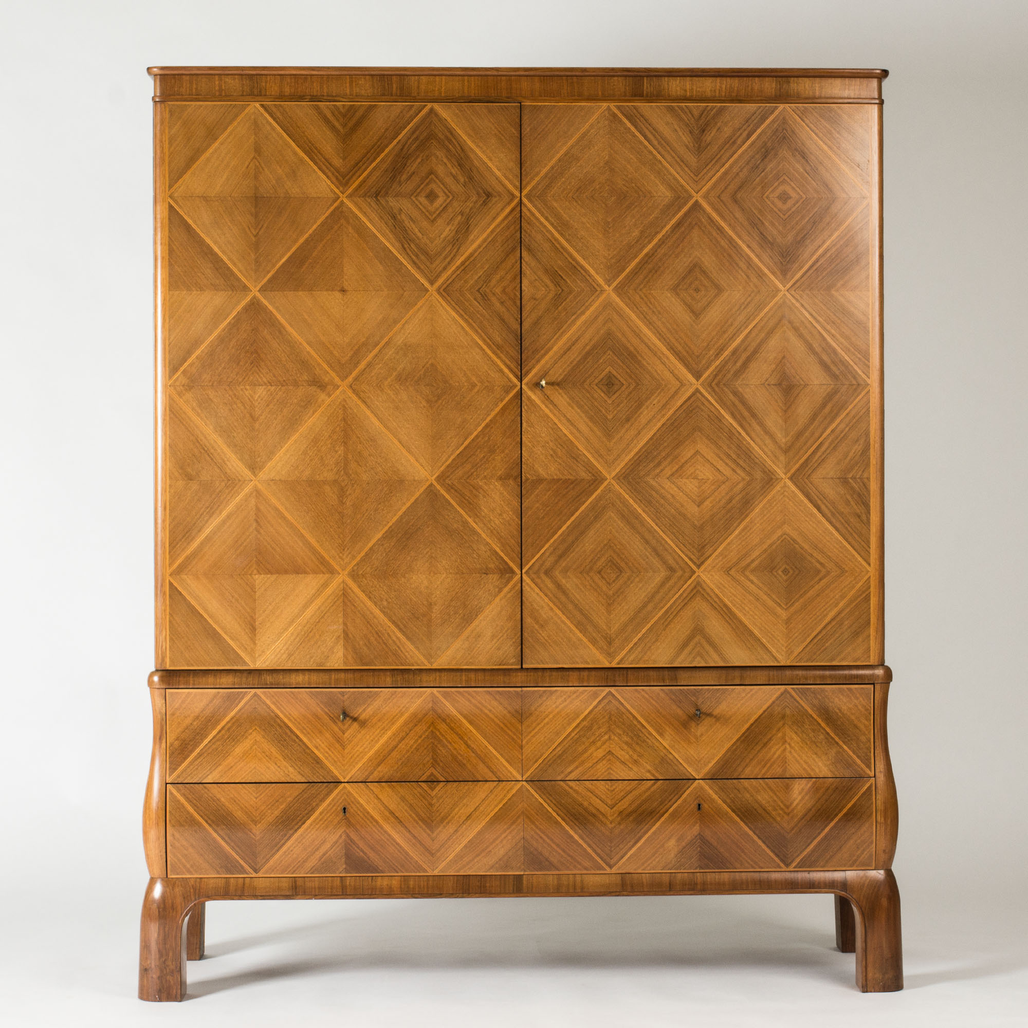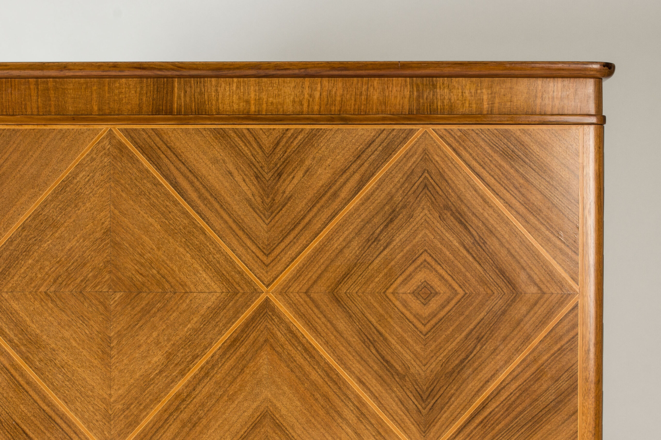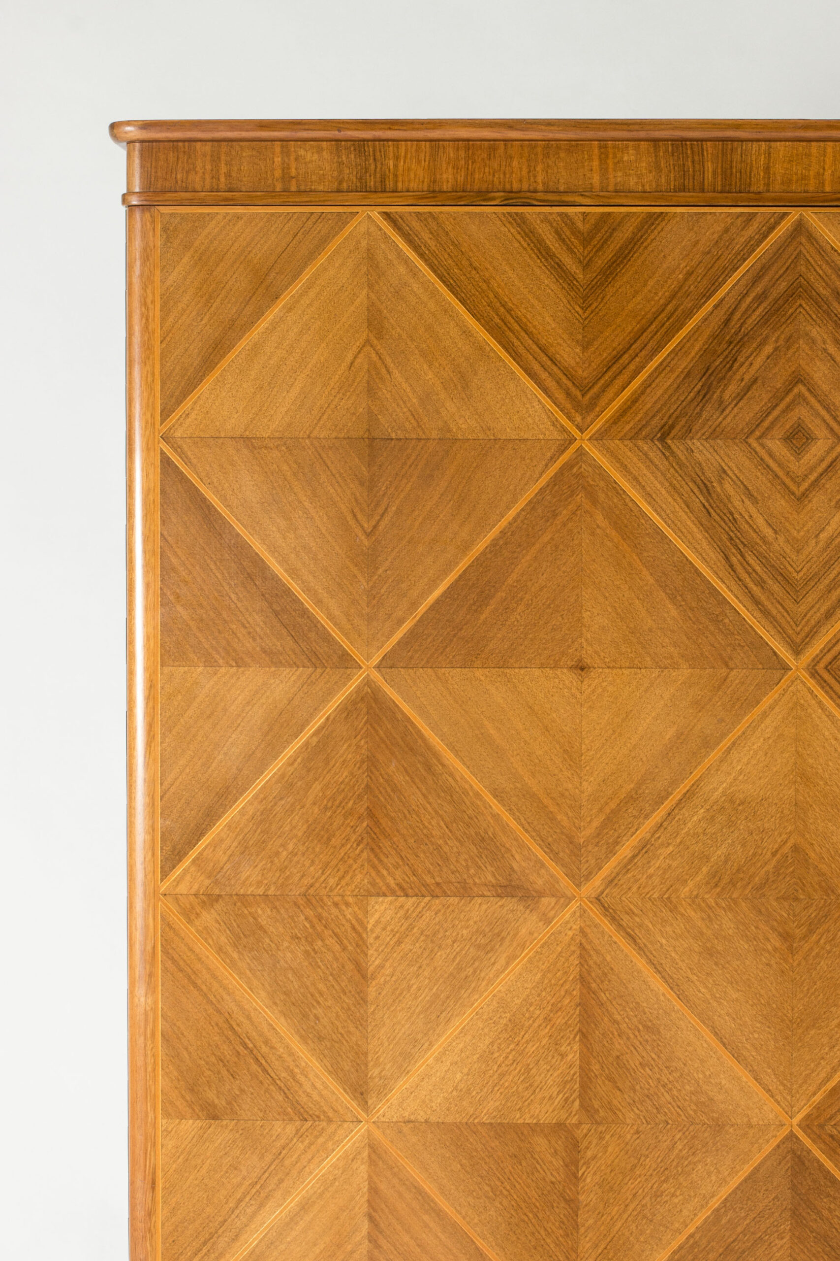 Striking Swedish Grace cabinet from Mobilia, design attributed to Oscar Nilsson who worked as a designer there at the time of its production. Made from mahogany with a beautiful diamond pattern.
