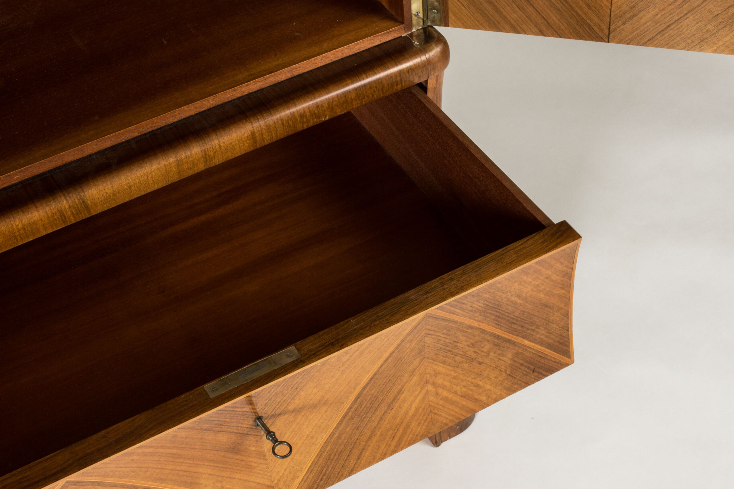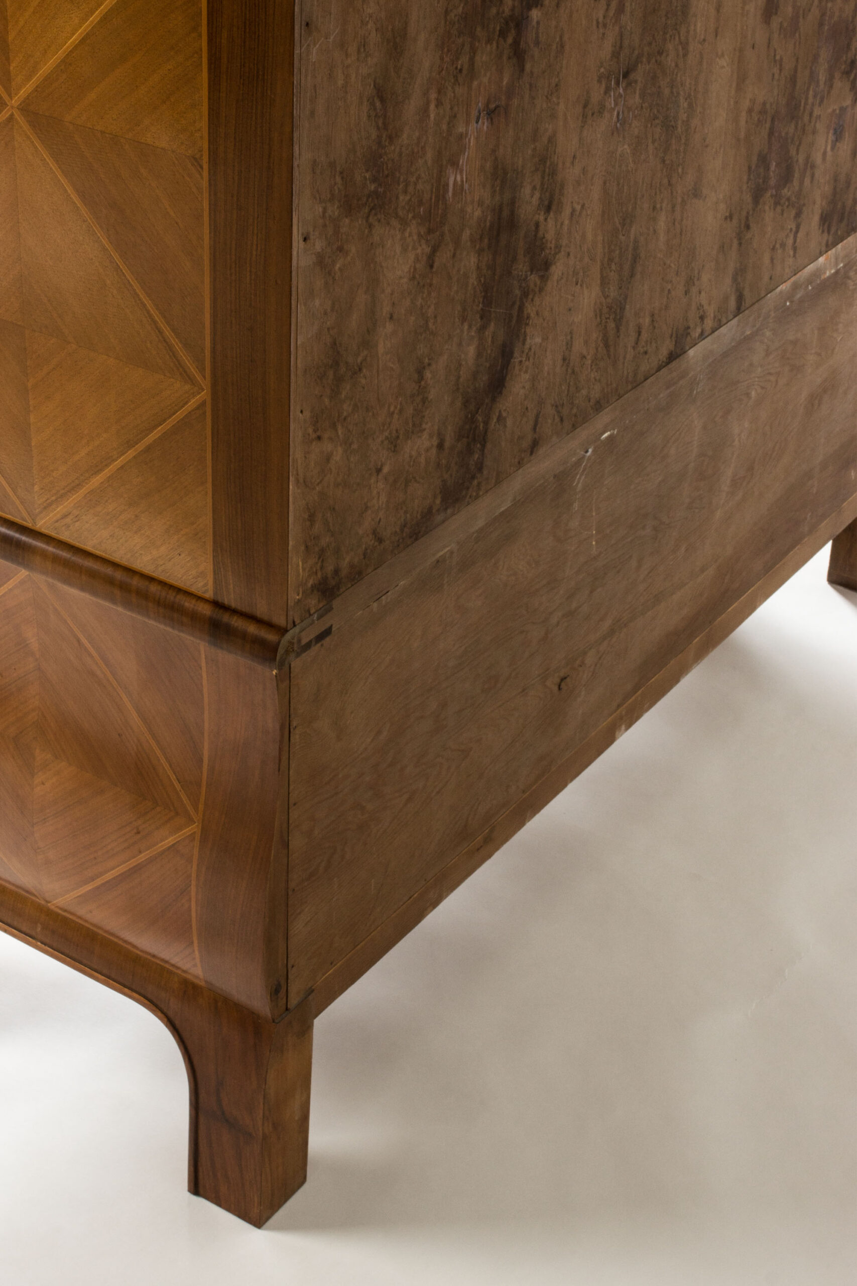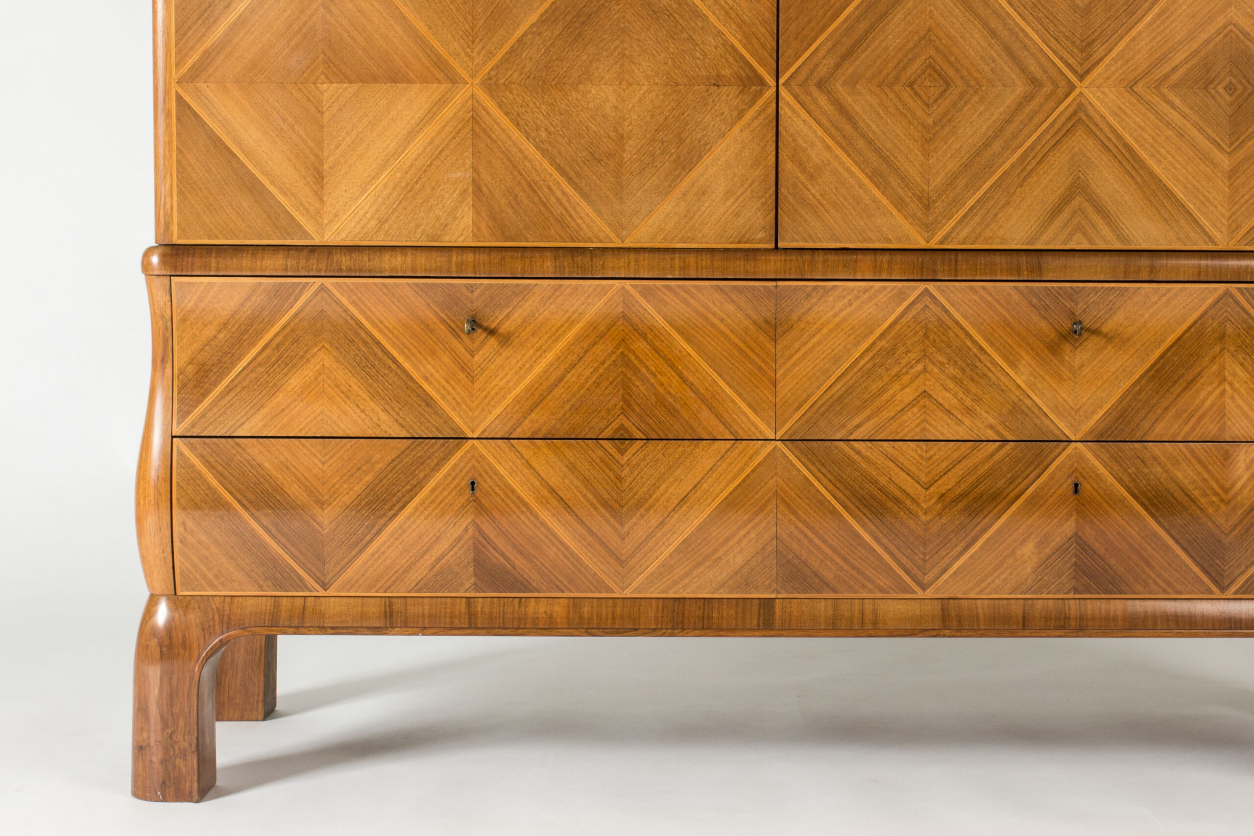 Striking Swedish Grace cabinet from Mobilia, design attributed to Oscar Nilsson who worked as a designer there at the time of its production. Made from mahogany with a beautiful diamond pattern.