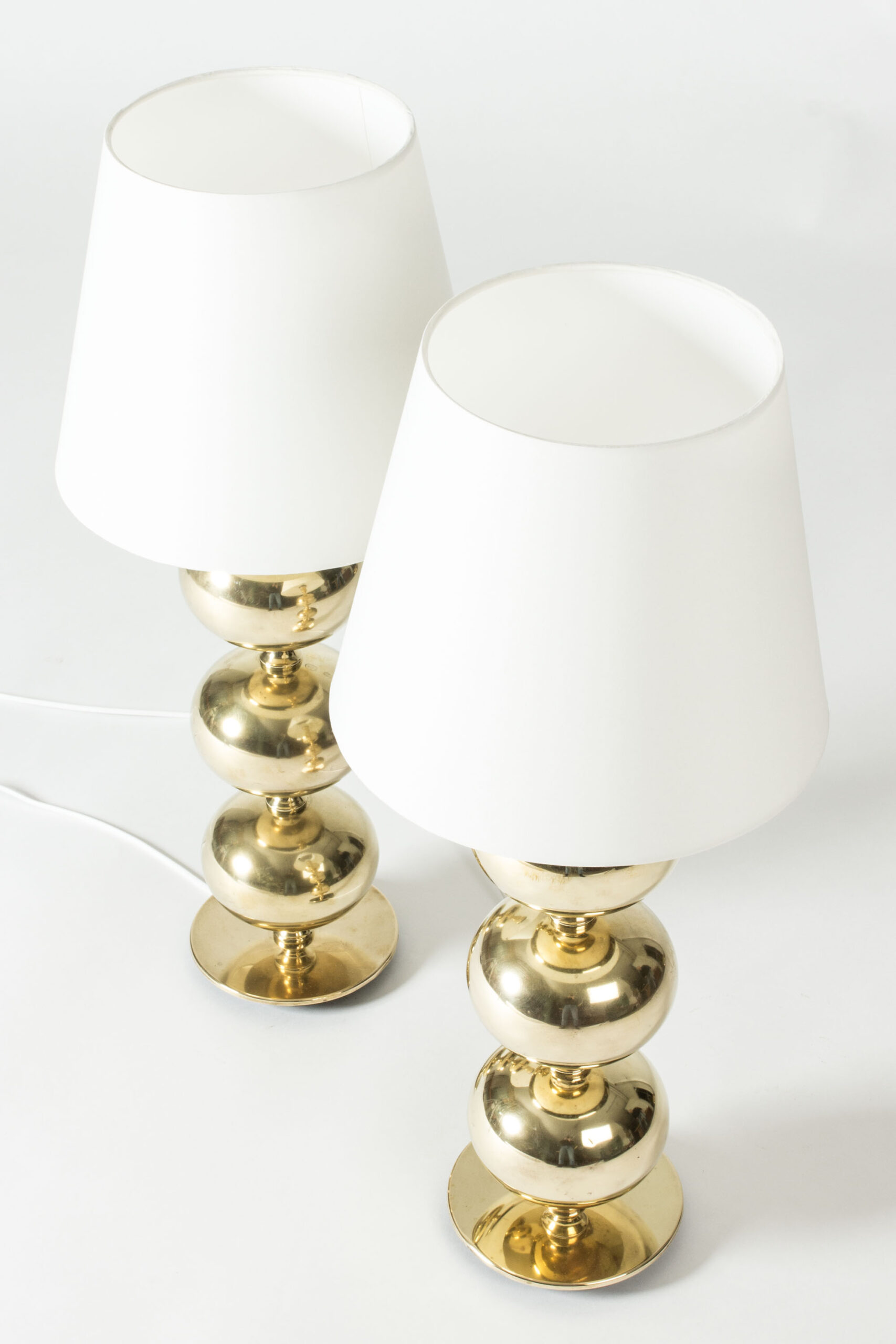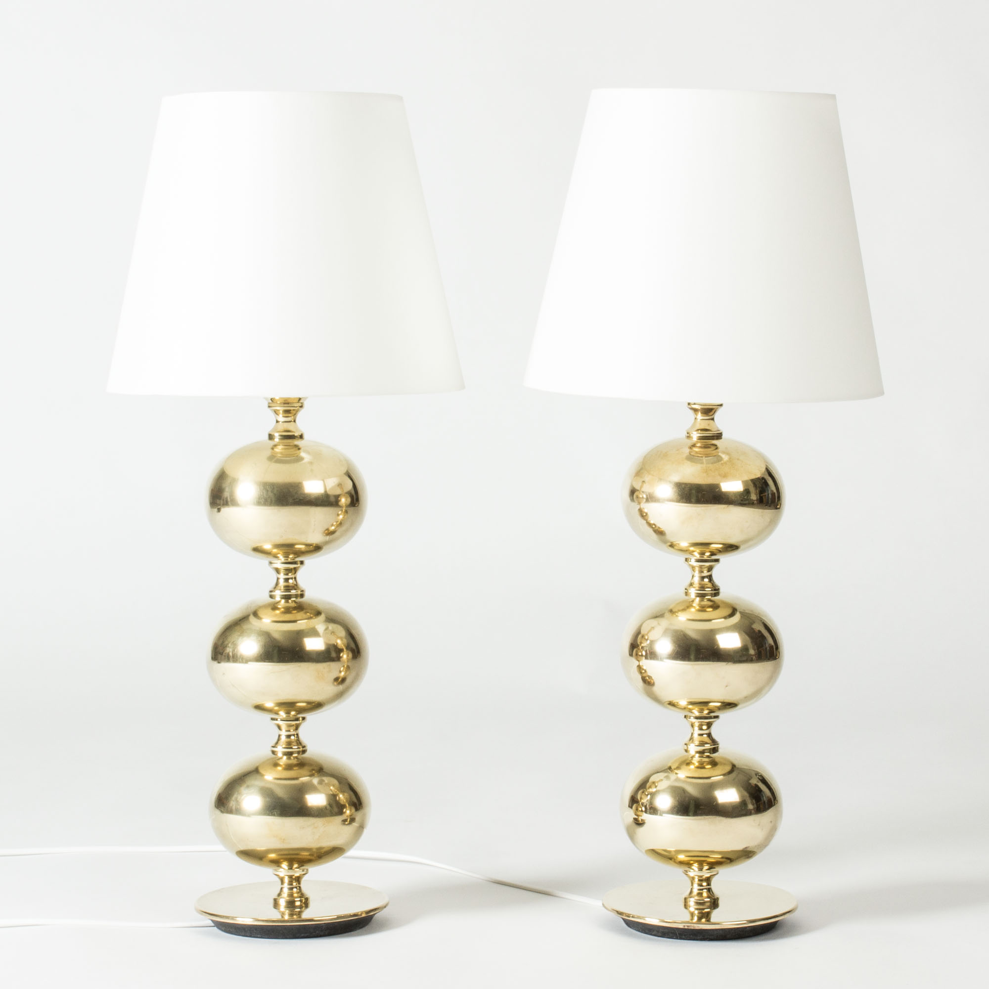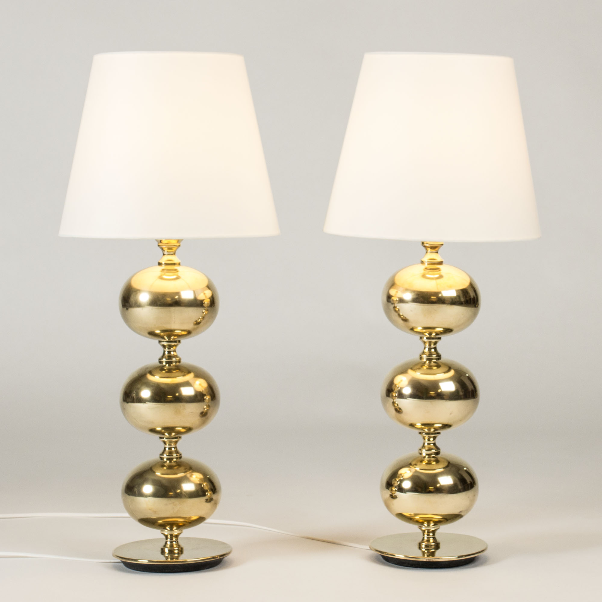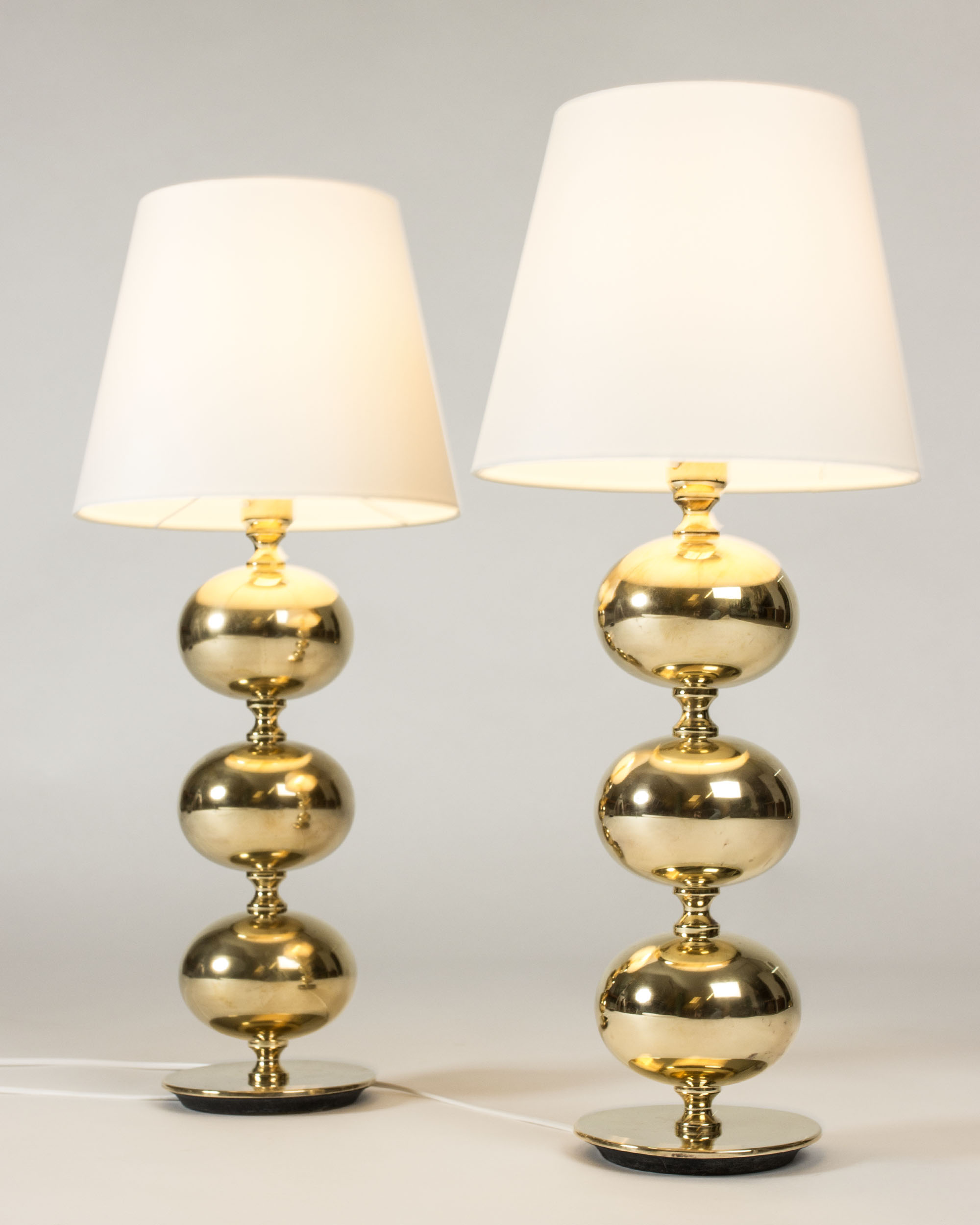 Pair of beautiful bulbous brass table lamps by Henrik Blomqvist for Tranås Stilarmatur. Tall size.